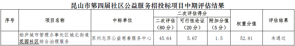 昆山市第四届社区公益服务招投标项目中期评估结果公示