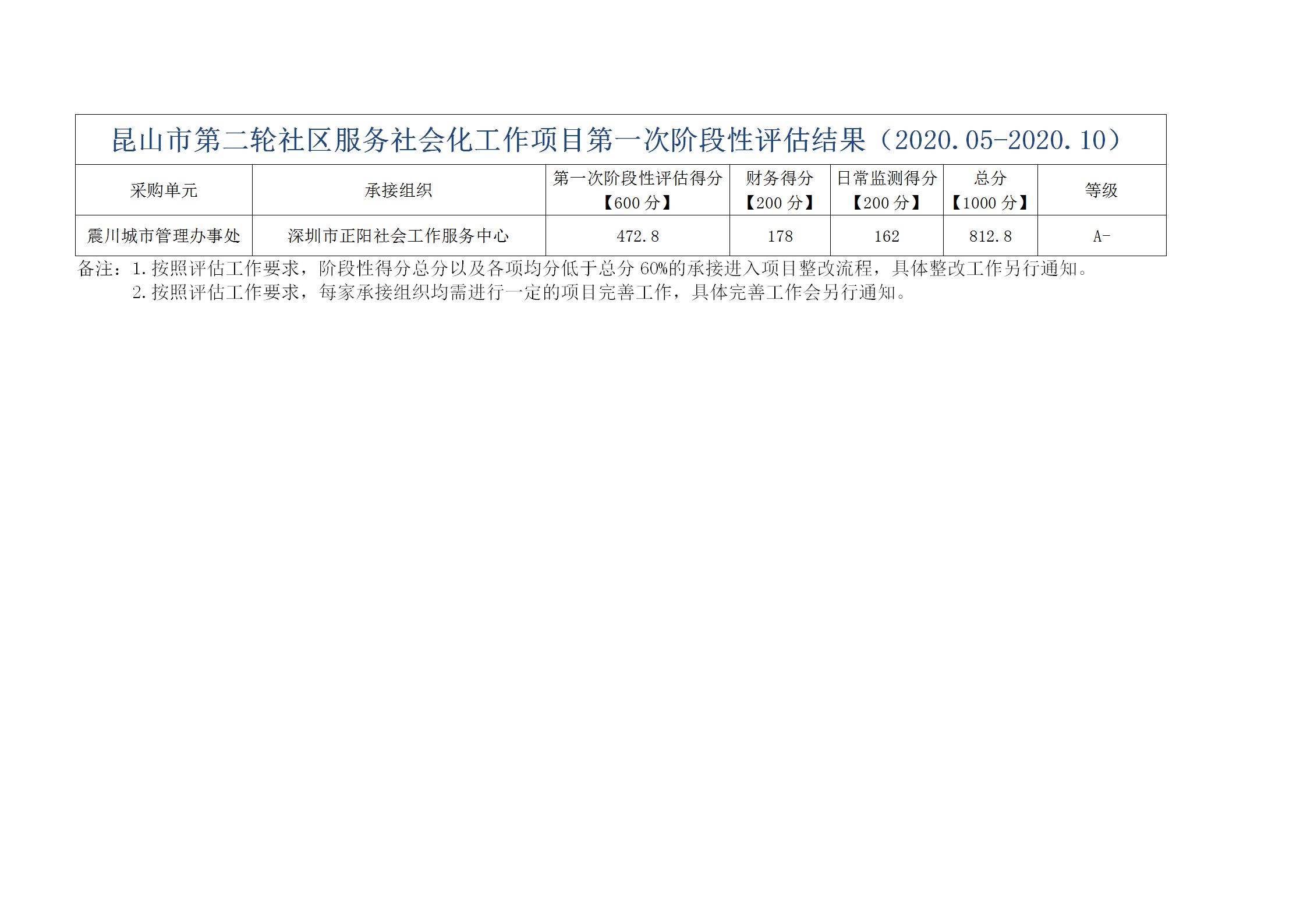 昆山市第二轮社区服务社会化项目震川城市管理办事处社区综合治理服务第一次阶段性评估结果公示