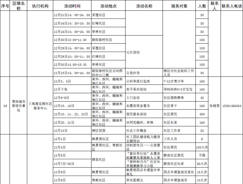 昆山市社区服务社会化项目12月活动安排表